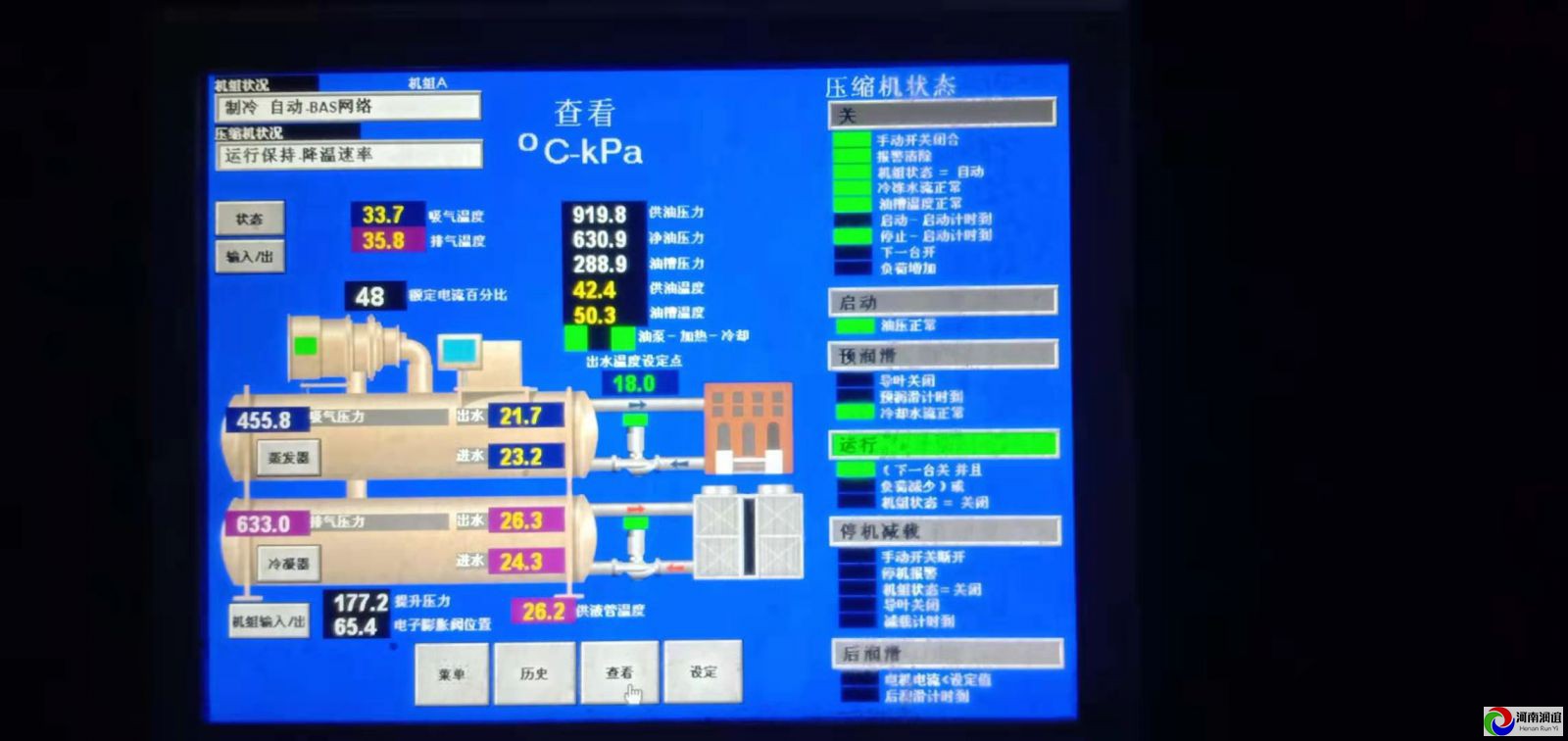 美的離心式中央空調(diào)機組啟動前檢查 按下列項目進行制冷機啟動前的操作確認(rèn): (1)油箱內(nèi)油位正確最高油位視液鏡中部附近。 (2)油溫正確機組初次安裝投運前或機組長期斷電、